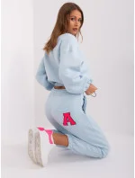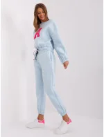 Světle modrá a fluo růžová mikinová souprava.