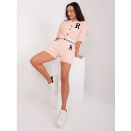 Broskvová dvoudílná bavlněná souprava pro volný čas.