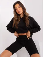 Černá bavlněná souprava pro volný čas s hladkou mikinou.
