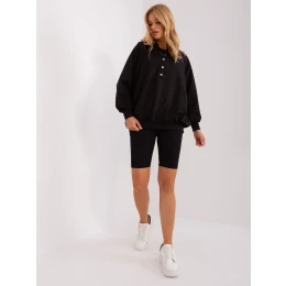 Černá třídílná souprava pro volný čas s širokou mikinou.