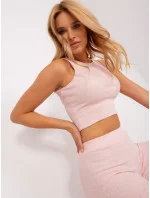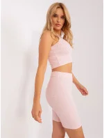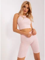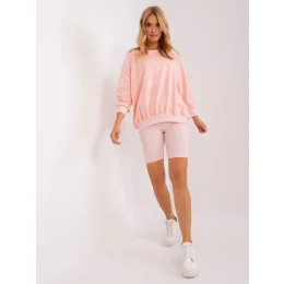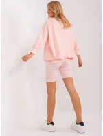 Světle růžová melanžová třídílná souprava s volnou mikinou.