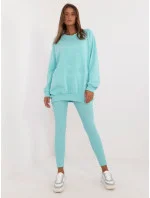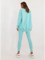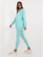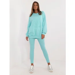 Rozměry soupravy v jedné velikosti měřené na plocho: šířka halenky v podpaží - 70 cm, délka halenky - 74 cm, délka rukávů - 64 cm, šířka legín v pase - 30 cm, výška pasu - 28 cm, délka legín - 98 cm.