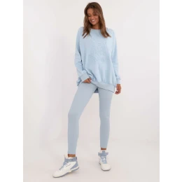 Rozměry soupravy v jedné velikosti měřené na plocho: šířka halenky v podpaží - 70 cm, délka halenky - 74 cm, délka rukávů - 64 cm, šířka legín v pase - 30 cm, výška pasu - 28 cm, délka legín - 98 cm.