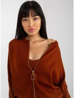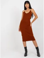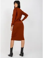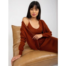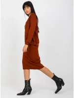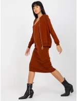 Tmavě hnědá dvoudílná souprava pro volný čas s šaty .