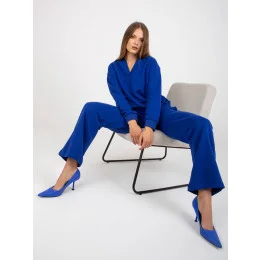 Rozměry soupravy ve velikosti S/M měřené na plocho: šířka halenky v podpaží - 65 cm, délka rukávů - 63 cm, délka halenky - 72 cm, šířka kalhot v pase - 34 cm, délka kalhot - 102 cm, výška pasu - 27 cm.