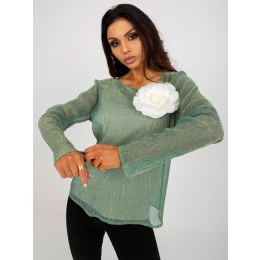 Světle zelená a béžová dvoudílná společenská halenka s broží .