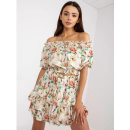 Rozměry soupravy ve velikosti S/M měřené na plocho: šířka halenky v podpaží - 45 cm, délka halenky - 47 cm, šířka sukně v pase - 33 cm, délka sukně - 44 cm.