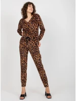Tmavě béžová a černá velurová souprava s potiskem .
