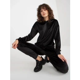 Černý dámský velurový komplet s kalhotami a mikinou .