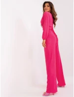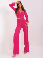 Tmavě růžový dámský ležérní komplet s kravatou .