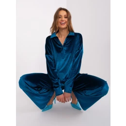 Rozměry soupravy ve velikosti S/M měřené na plocho: šířka halenky v podpaží - 60 cm, délka rukávů - 65 cm, délka halenky - 66 cm, šířka kalhot v pase - 31 cm, výška pasu - 31 cm, délka kalhot - 111 cm.