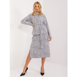 Rozměry soupravy ve velikosti S/M měřené na plocho: šířka šatů v podpaží - 50 cm, délka šatů - 121 cm, šířka saka v podpaží - 58 cm, délka rukávu - 62 cm, délka saka - 65 cm.