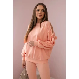 Sada mikiny s mašlí na rukávech a legínách losos