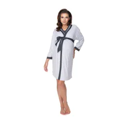 Těhotenská noční košile s kontrastním lemováním. Obálkový výstřih s kojící vložkou. Lze nosit i po těhotenství. Doplněno županem ve stejné barvě s páskem.