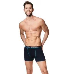 Balení 2 pánských boxerek v černé a zelené barvě z nejnovější kolekce výrobce. Guma s potiskem Henderson. Přední panel zdobí kontrastní lemování. Měkký, pružný bavlněný úplet.