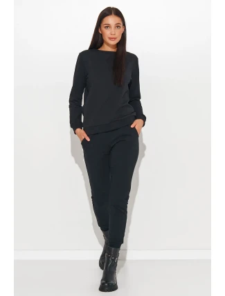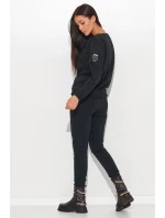 Klasická dámská souprava z tenkého bavlněného úpletu se skvěle hodí pro pracovní i každodenní styling. Sada je jednotná a jednoduchá. Jedinou ozdobou je krásná jemná nášivka s podpisem značky. Díky tomu je sada velmi univerzální. Halenka má kulatý výstřih a kalhoty mají praktické postranní kapsy. Oblečte si tento komplet s oblíbenými botami na podpatku a elegantní kabelkou a vyrazte do města. Dáváte přednost ležérnosti před elegancí? Pak si nazujte sportovní boty, vezměte batoh a oblečte si tuto krásnou teplákovou soupravu.
