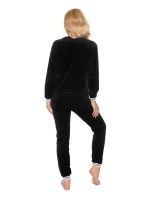 Tepláková souprava s kontrastním lemováním. Halenka s kulatým výstřihem. Mikina je vyrobena z měkké velurové tkaniny. Kalhoty s netlačícím páskem.
