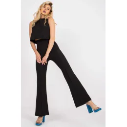 Elegantní souprava sestávající z halenky a dlouhých kalhot. Krátká halenka bez rukávů se zavazováním na zádech. Dlouhé kalhoty s vysokým pasem, zapínané na krytý zip. Ideální sada pro mnoho příležitostí.
