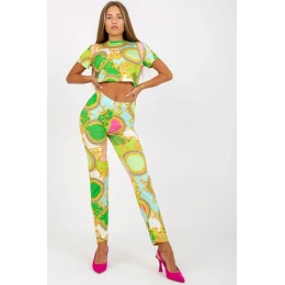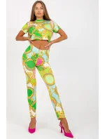 Letní souprava sestávající z trička a legín. Krátké tričko s krátkým rukávem. Legíny s vysokým pasem a zúženými nohavicemi.
