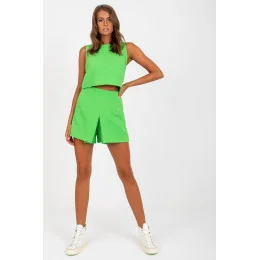 Sada se skládá z šortek a topu. Šortky s vysokým pasem, širokými nohavicemi a elastickým pasem. Top bez rukávů s ozdobným vázáním na zádech.