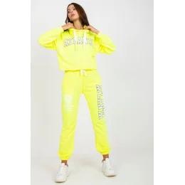 Tepláková souprava sestávající z mikiny a kalhot. Mikina s dlouhými rukávy a kapucí. Dlouhé kalhoty s vysokým pasem, elastickým pasem a vázáním, s kapsami na bocích.