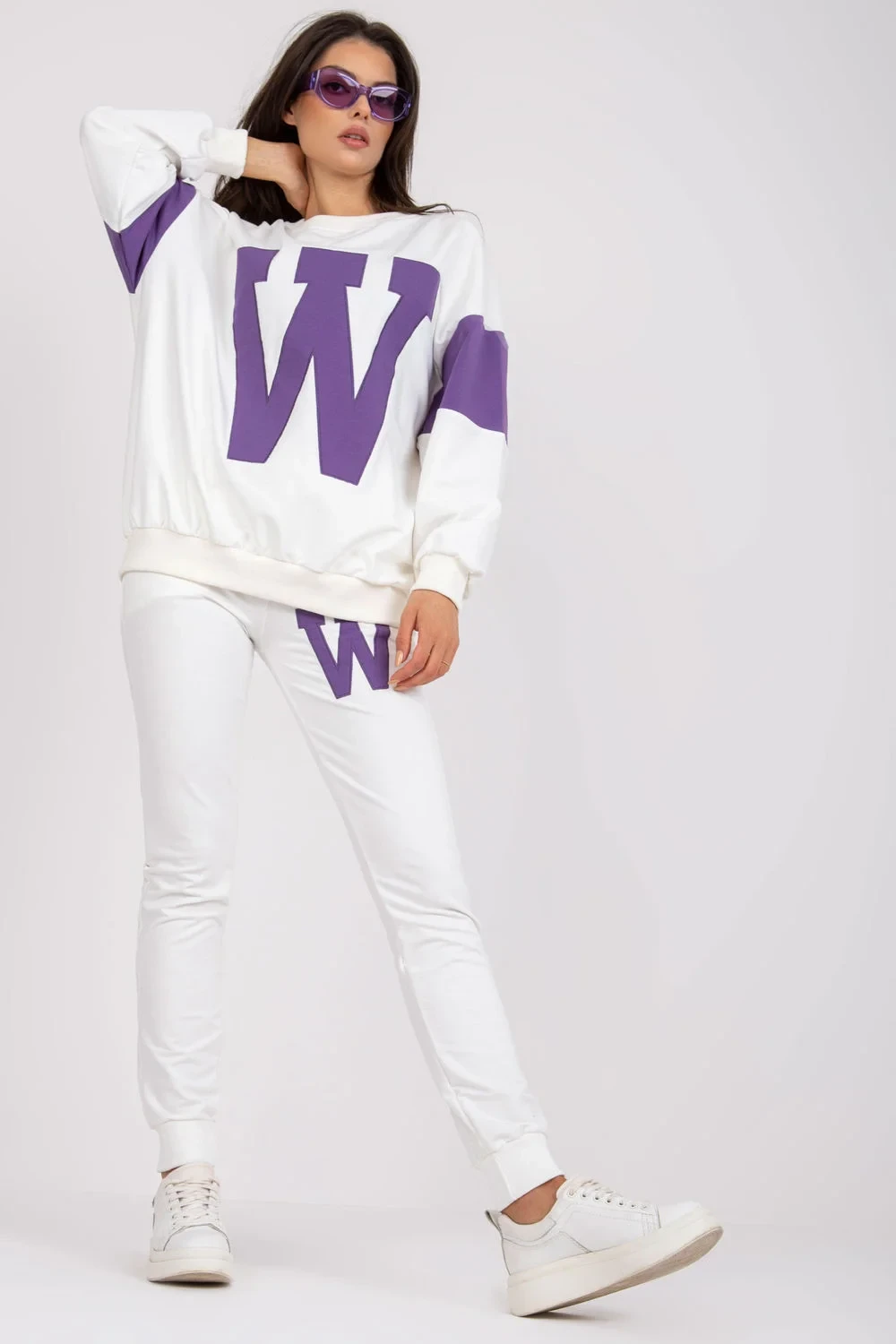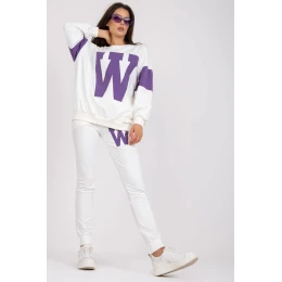 Dámská tepláková souprava sestávající z mikiny a dlouhých kalhot. Volná mikina s dlouhými rukávy. Dlouhé kalhoty přiléhavého střihu se šňůrkami v pase a kapsami na bocích.