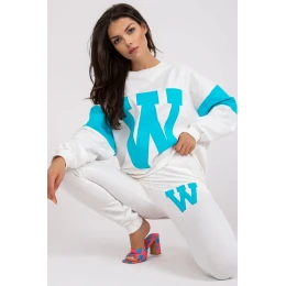 Dámská tepláková souprava sestávající z mikiny a dlouhých kalhot. Volná mikina s dlouhými rukávy. Dlouhé kalhoty přiléhavého střihu se šňůrkami v pase a kapsami na bocích.
