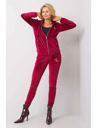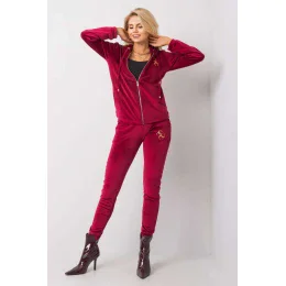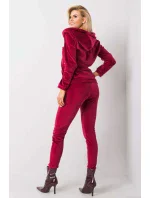 Velurová souprava sestávající z mikiny a kalhot. Mikina na zip s dlouhými rukávy, kapucí a kapsami. Dlouhé kalhoty se zavazováním v pase a bočními kapsami.