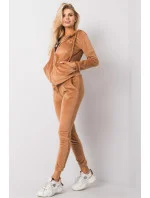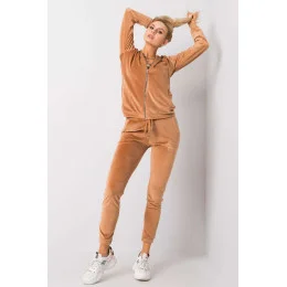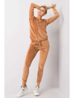 Velurová souprava sestávající z mikiny a dlouhých kalhot. Mikina s dlouhými rukávy a kapucí, zapínání na zip. Na přední straně jsou kapsy na druky. Dlouhé kalhoty se stahovací šňůrkou v pase a nakládanými kapsami na bocích.