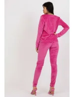 Velurová souprava sestávající z halenky a kalhot. Halenka s dlouhými rukávy a kulatým výstřihem. Dlouhé kalhoty se zavazováním v pase a nakládanými kapsami.