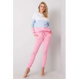 Tepláková souprava sestávající z mikiny a kalhot. Halenka s dlouhými rukávy a kulatým výstřihem. Mikina z látky ve třech barvách. Dlouhé kalhoty s pružným pasem, stahovací šňůrkou v pase a nakládanými kapsami.