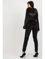 Velurová souprava sestávající z mikiny a dlouhých kalhot. Mikina s dlouhými rukávy a kapucí, zapínání na zip. Na přední straně jsou kapsy na druky. Dlouhé kalhoty se stahovací šňůrkou v pase a nakládanými kapsami na bocích.