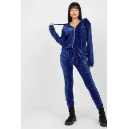 Velurová souprava sestávající z mikiny a kalhot. Mikina na zip s dlouhými rukávy, kapucí a kapsami. Dlouhé kalhoty se zavazováním v pase a bočními kapsami.