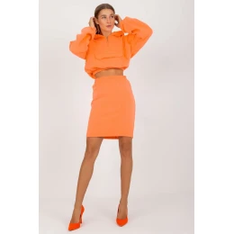 Zajímavá souprava pro každodenní nošení sestávající z mikiny a sukně. Mikina s kapucí, dlouhými rukávy a kapsou na přední straně. Sukně s elastickým pasem.