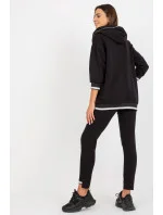 Velurová souprava sestávající z mikiny a dlouhých kalhot. Mikina s dlouhými rukávy a kapucí, zapínání na zip. Na přední straně jsou kapsy na druky. Dlouhé kalhoty se stahovací šňůrkou v pase a nakládanými kapsami na bocích.