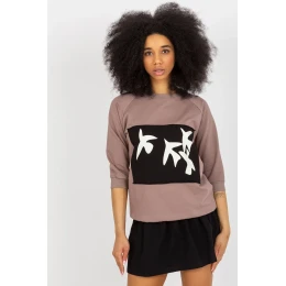 Tepláková souprava sestávající z halenky a sukně. Halenka s 3/4 rukávy a kulatým výstřihem. Ozdobný potisk na přední straně. Sukně s vyšším pasem, zapínání na zip a knoflík.