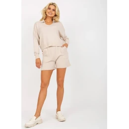 Ležérní souprava sestávající z šortek a svetru. Volný svetr s dlouhými rukávy. Krátké šortky s pružným pasem a kapsami.