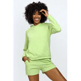 Sada Koko má mikinu s dlouhým rukávem a kapucí. Je vyrobena z hladkého materiálu, nemá zip a má velkou kapsu. A pár krátkých tepláků, které jsou vyrobeny z hladkého, příjemného materiálu. Mají dvě kapsy na přední straně nohavic a jsou na gumu. Teplákové soupravy DKaren jsou vyrobeny z vysoce kvalitních materiálů a jsou k dispozici v mnoha barvách a stylech. Ať už hledáte jednoduché oblečení na trénink, nebo sofistikovanější na doma, DKaren pro vás má ideální teplákovou soupravu.
