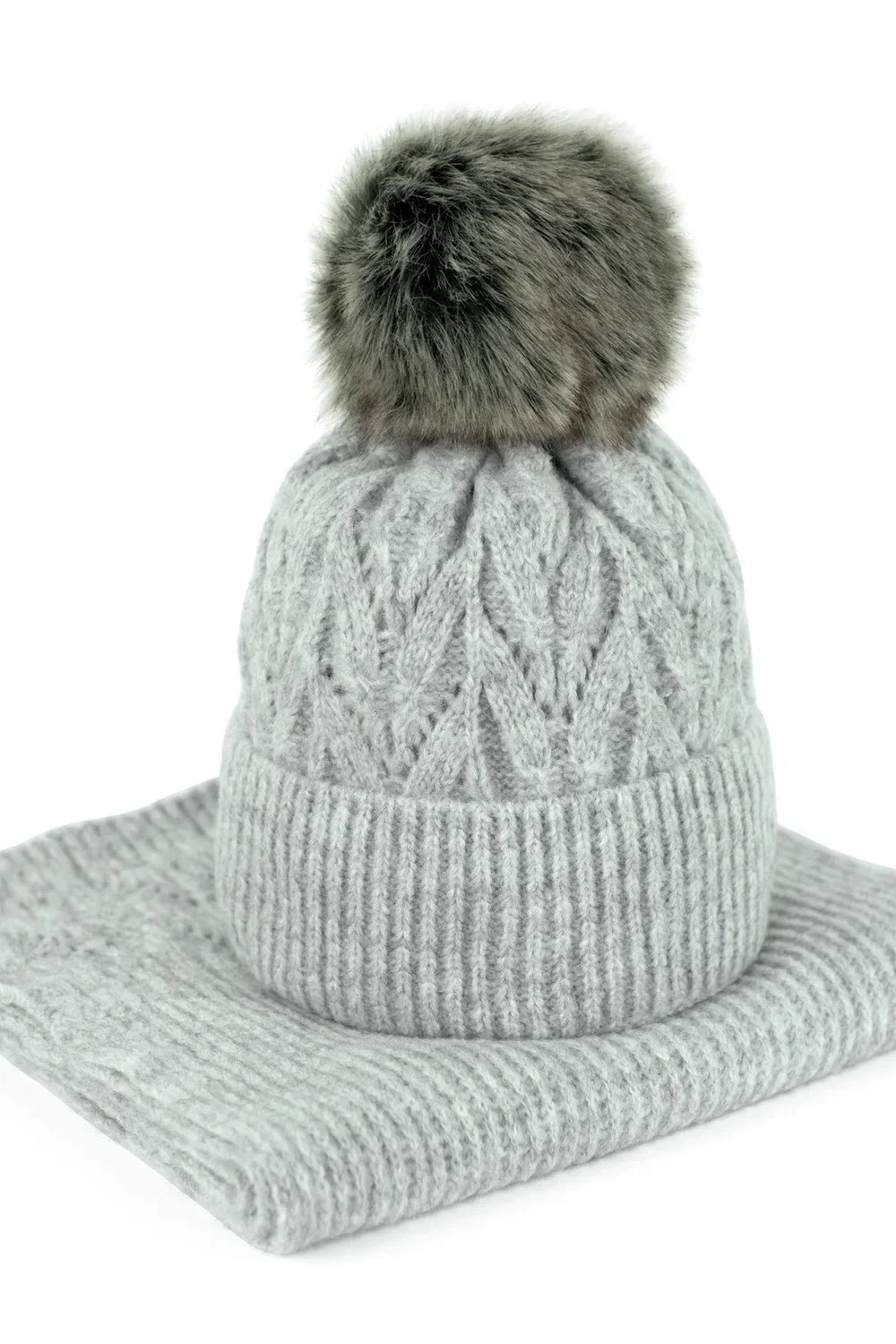 Polská sada sestávající z čepice s bambulí a šály. Vyrobeno z příze příjemné na dotek. Čepice je navíc zateplená fleecem.