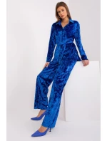 Tato velurová souprava je synonymem ležérního pohodlí a stylu. Košile se zapínáním na knoflíky vyzařuje ležérnost a uvolněnost a je ideální pro každodenní nošení. Košile je vyrobena z příjemného veluru a poskytuje měkký a ležérní pocit. Kalhoty, rovněž vyrobené z veluru, mají široké nohavice, což podtrhuje ležérní charakter soupravy. Vysoký pas s gumičkou zajišťuje nejen pohodlné nošení, ale také originální vzhled. Kalhoty mají navíc praktické boční kapsy pro pohodlné uložení drobností. Celek je doplněn páskem na zavazování, který je nejen praktickým doplňkem, ale také dodává stylizaci úplnost. Jedná se o ideální komplet pro ženy, které si cení pohodlí a volnosti, a přitom se nevzdávají módního výrazu ani v každodenních situacích.