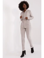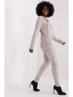 Velurová souprava sestávající z mikiny a dlouhých kalhot. Mikina s dlouhými rukávy a kapucí, zapínání na zip. Na přední straně jsou kapsy na druky. Dlouhé kalhoty se stahovací šňůrkou v pase a nakládanými kapsami na bocích.
