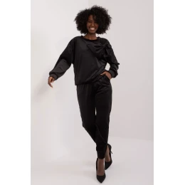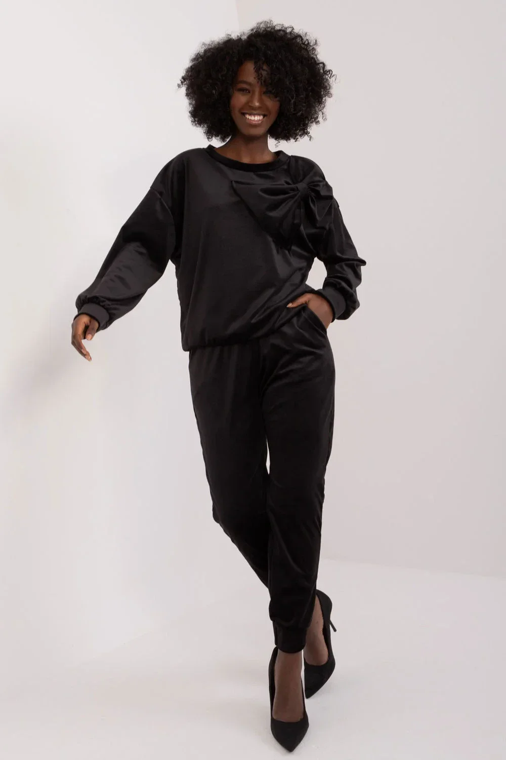 Souprava velurové mikiny a kalhot je ideální volbou pro ty, kteří ocení kombinaci pohodlí a ležérního stylu. Tato souprava, vytvořená pro každodenní aktivity, poskytuje nejen pohodlí při nošení, ale také módní vzhled. Dominantním materiálem je hladký polyester, který soupravě dodává elegantní povrch a zpříjemňuje nošení na pokožce. Díky standardní délce halenky a kalhot je souprava praktická a univerzální, ideální pro různé příležitosti. Nohavice kalhot jsou zakončeny žebrovanými lemy pro moderní, lehce sportovní vzhled. Kalhoty s vysokým pasem zdůrazňují siluetu a dodávají módní nádech. Boční kapsy na kalhotách jsou praktickým prvkem pro nošení drobných předmětů. Halenka s dlouhými rukávy a kulatým výstřihem je pohodlná a vhodná pro každodenní nošení. Dodatečný ozdobný prvek v podobě mašle na přední straně mikiny dodává soupravě jemný půvab a zvyšuje její atraktivitu. Tato souprava mikiny a kalhot kombinuje ležérní styl s moderním pohodlným střihem, takže je ideální volbou pro aktivní den plný pohodlí a módního vzhledu.