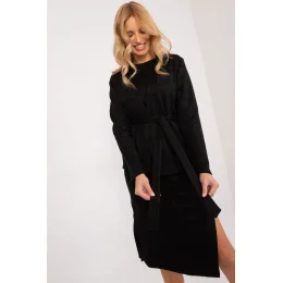 Tato ležérní kombinace svetru a šatů je ideální pro různé každodenní situace, od práce až po setkání s přáteli. Díky jejich jedinečnému designu a kvalitním materiálům se budete cítit pohodlně a stylově. Kardigan s dlouhými rukávy je vyroben převážně z měkké a na dotek příjemné angory, která zajišťuje nejen teplo, ale také pohodlí při nošení. Je vybaven páskem na zavazování, který dodává lehkost a eleganci a zároveň zvýrazňuje pas. Šaty v délce ke kolenům, vyrobené ze stejného materiálu jako svetr, jsou dokonalým doplňkem tohoto kompletu. Jejich elegantní design jim dodává univerzální charakter, který se hodí k mnoha outfitům. Šaty bez rukávů a s kulatým výstřihem poskytují volnost pohybu a dodávají celému vzhledu lehkost. Díky délce ke kolenům se šaty hodí pro mnoho různých příležitostí, jak formálnějších, tak ležérnějších. Tato kompletní kombinace svetru a šatů bude ideální volbou pro mnoho různých příležitostí a dodá pohodlí a styl každé situaci.