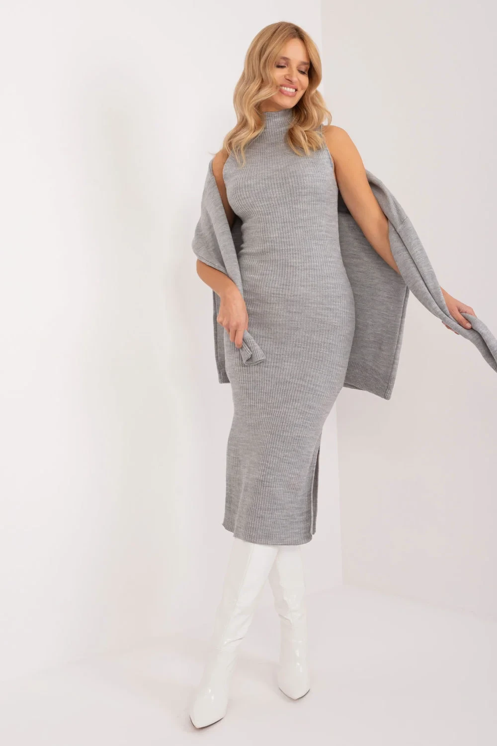 Tato ležérní kombinace svetru a šatů je ideální volbou pro každodenní nošení, hodí se do práce i na odpočinek po práci. Jejich pohodlný design a příjemné materiály vám zajistí pohodlí po celý den, aniž byste se vzdali módního vzhledu. Šaty bez rukávů a roláku jsou vyrobeny z žebrované tkaniny, která jim dodává jedinečný charakter a strukturu. Jsou ideální volbou pro různá roční období, přičemž zajišťují volnost pohybu a pohodlí při nošení. Svetr se srdíčkovým výstřihem a dlouhými rukávy se snadno nosí díky vsazení přes hlavu. Je vyroben z měkkého a hřejivého akrylu, takže poskytuje dodatečnou ochranu před chladem v chladnějších dnech a zároveň dodává celému vzhledu charakter. Díky svému ležérnímu stylu a všestrannosti bude tato souprava ideální volbou pro každodenní situace a vždy přispěje k vašemu pohodlí a stylu.