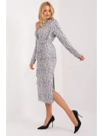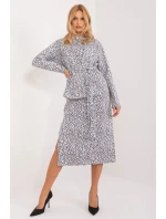 Tento elegantní komplet se skládá z dokonale padnoucího saka a šatů klasického střihu, které se hodí pro různé příležitosti, od práce až po obchodní schůzky nebo slavnostní události. Šaty bez rukávů působí velmi stylově a žensky. Zapínání na zip zajišťuje snadné a pohodlné oblékání šatů a zároveň dodává tradičnímu střihu nádech modernosti. Kulatý výstřih dodává šatům jemnost a zdůrazňuje jejich dekolt. Dominantním vzorem šatů je jemný potisk, který dodává šatům jemný půvab a eleganci. Dominantním materiálem je kvalitní bavlna, která zaručuje pohodlné celodenní nošení. Šaty mají midi délku, takže jsou univerzální a vhodné pro mnoho příležitostí. Sako, vyrobené ze stejného materiálu jako šaty, má dlouhé rukávy, takže je ideální volbou pro chladnější dny. Klasický střih a důraz na detail dodávají celkovému vzhledu profesionální nádech. Dalším prvkem je pásek na zavázání, který zvýrazňuje pas a dodává siluetě ženský tvar a eleganci. Tento komplet je ideální volbou pro ženy, které chtějí vypadat stylově, elegantně a přitom profesionálně během práce, obchodních schůzek nebo jiných formálních příležitostí.