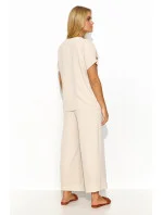 Dresová sada je ideálním návrhem pro lidi, kteří ocení pohodlí a styl v každodenních, neformálních outfitech. Dres se skládá z volného svetru a širokých kalhot, což zaručuje maximální pohodlí nošení. Celý kus je vyroben z měkkého, příjemného na dotek materiálu, který se ideálně hodí na chladnější dny. Svetr má klasický, jednoduchý střih s dlouhými rukávy a mírně spuštěným ramenem. Je dokončen kulatým výstřihem. Kalhoty mají široké nohavice, což dává celkovému vzhledu trendy, oversized charakter a šev podél nohavic opticky prodlužuje nohy. Elastický pás v pase zajistí pohodlné přizpůsobení. Tento set se ideálně hodí na každodenní výlety, nákupy nebo setkání s přáteli. Tento set je kombinací funkčnosti a stylu, ideální pro lidi, kteří chtějí být pohodlní, aniž by se vzdali módního vzhledu.