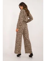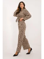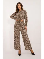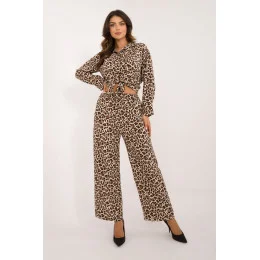 Dámská sada s módním zvířecím motivem, skládající se z košile a kalhot, vyrobená z kombinace polyesteru a elastanu. Košile má dlouhý rukáv a je zapínána na knoflíky, co jí dodává klasický charakter. Navíc je vybavena límečkem, který podtrhuje elegantní vzhled. Kalhoty jsou dlouhé, s širokými nohavicemi, které zajistí pohodlí a volnost pohybu. Vysoký pas kalhot krásně zdůrazňuje siluetu, dodávající celku rafinovanost. Tento set je ideální volbou pro ženy, které ocení módu, pohodlí a trochu dravý styl každý den.