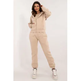 Dámská tepláková souprava ideální pro každodenní ležérní a sportovní styling, vyrobená ze směsi bavlny a elastanu. Souprava se skládá z krátkého trička na ramena, mikiny na zip s kapucí, dlouhými rukávy a nakládanými kapsami a kalhot s dlouhými nohavicemi a žebrovanými manžetami. Kalhoty mají vysoký náplet a boční kapsy pro větší pohodlí. Na zadní straně kalhot v úrovni hýždí je decentní potisk. Celkový design je zachován v melanžovém vzoru a dodatečné zateplení poskytuje pohodlí v chladnějších dnech. Jedná se o pohodlnou a stylovou volbu pro každodenní nošení.....