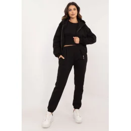 Dámská tepláková souprava ideální pro každodenní ležérní a sportovní styling, vyrobená ze směsi bavlny a elastanu. Souprava se skládá z krátkého trička na ramena, mikiny na zip s kapucí, dlouhými rukávy a nakládanými kapsami a kalhot s dlouhými nohavicemi a žebrovanými manžetami. Kalhoty mají vysoký náplet a boční kapsy pro větší pohodlí. Na zadní straně kalhot v úrovni hýždí je decentní potisk. Celkový design je zachován v melanžovém vzoru a dodatečné zateplení poskytuje pohodlí v chladnějších dnech. Jedná se o pohodlnou a stylovou volbu pro každodenní nošení.....
