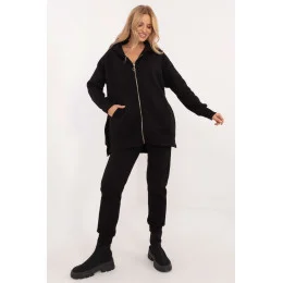 Dámská tepláková souprava v ležérním stylu, ideální na každodenní vycházky, se skládá z mikiny a kalhot. Je vyrobena ze směsi bavlny a elastanu a díky elastickým vlastnostem tkaniny nabízí pohodlí, měkkost a volnost pohybu. Mikina má dlouhé rukávy, zapínání na zip a našité kapsy na přední straně pro větší praktičnost a sportovní styl. Mikina má také kapuci pro větší ochranu před chladem a díky hladkému vzoru vypadá souprava klasicky a stylově. Kalhoty s dlouhými nohavicemi a žebrovanými manžetami mají vysoký náplet, který zvýrazňuje siluetu a zaručuje pohodlné nošení. V pase je elastický pásek pro pohodlí a dokonalé držení kalhot. Boční nakládané kapsy na kalhotách jsou praktické a funkční. Tato souprava je kombinací pohodlí, stylu a praktičnosti, ideální pro každodenní ležérní styling.